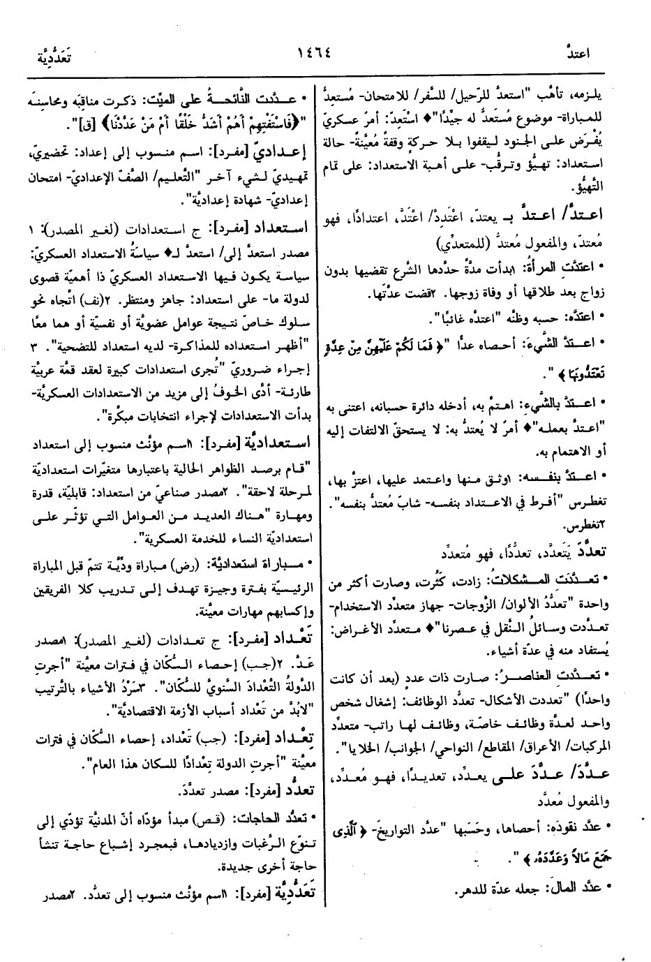 1 - مصدر استعدَّ إلى/ استعدَّ لـ ° سياسَةُ الاستعداد العسكريّ: سياسة يكون فيها الاستعداد العسكريّ ذا أهميّة قصوى لدولة ما- على استعداد: جاهز ومنتظر.
