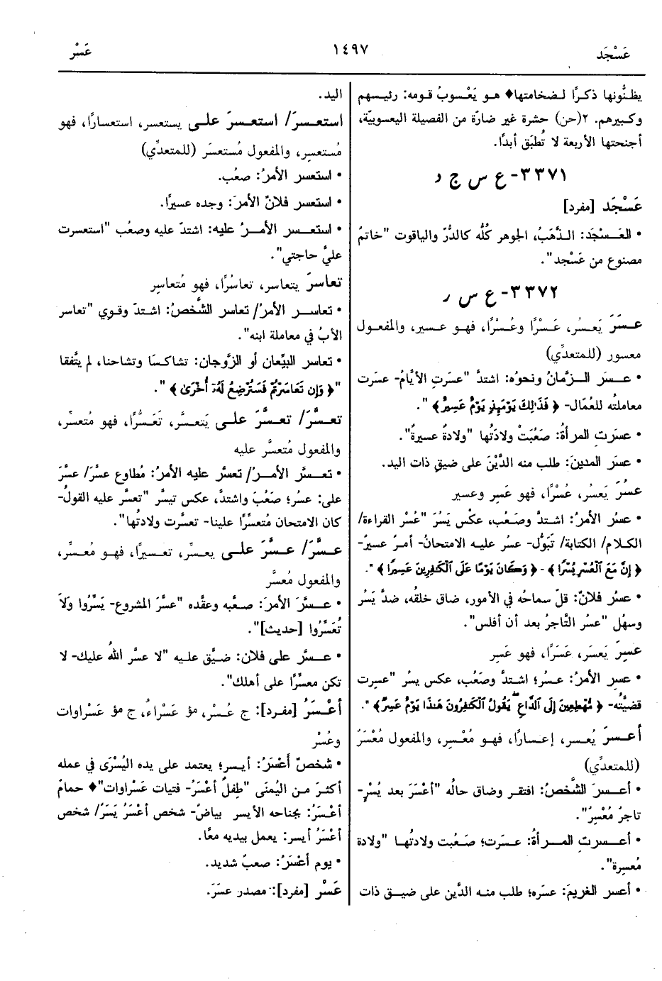 • عسَّر على فلان: ضيَّق عليه "لا عسَّر اللهُ عليك- لا تكن معسِّرًا على أهلك".