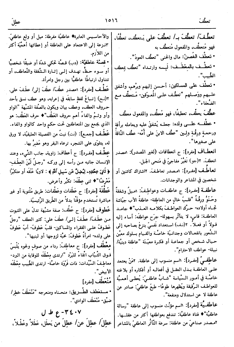 1 - ميلٌ وشفقةٌ وحُنُوٌّ ورِقَّةٌ "قلبٌ خالٍ من العاطِفة- عاطفةُ الأب جيّاشة تجاه أولاده- حرَّك العواطفَ بكلامه العذب" ° جامد العاطفة: قاسٍ، لا يتأثَّر بسهولة- جرَح عواطفَه: أساء إليه قولاً أو فعلاً.
