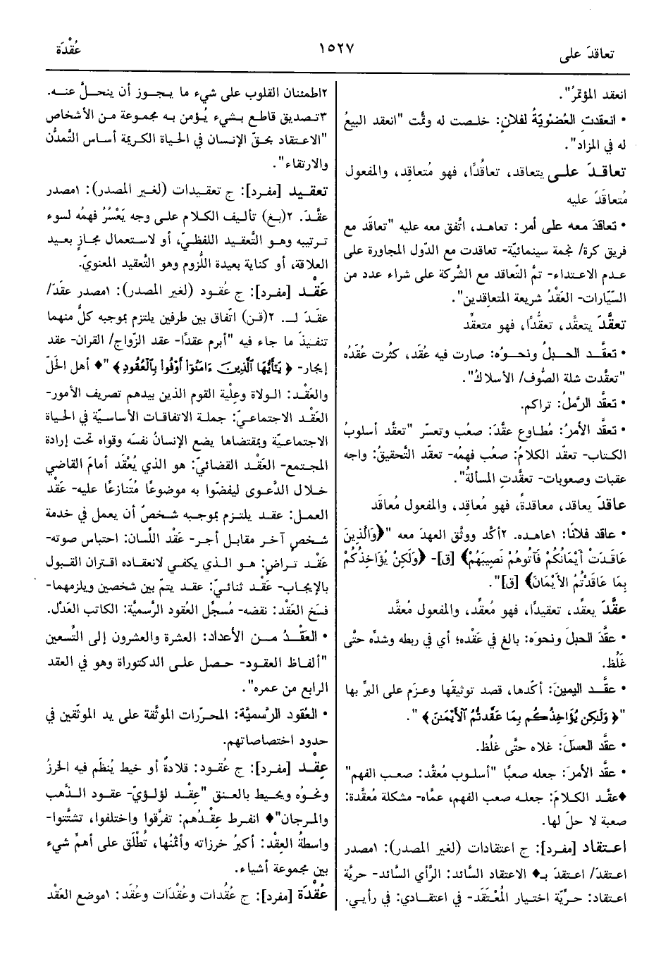 • عقَّد اليمينَ: أكّدها، قصد توثيقَها وعزَم على البرِّ بها " {وَلَكِنْ يُؤَاخِذُكُمْ بِمَا عَقَّدْتُمُ الأَيْمَانَ} ".
