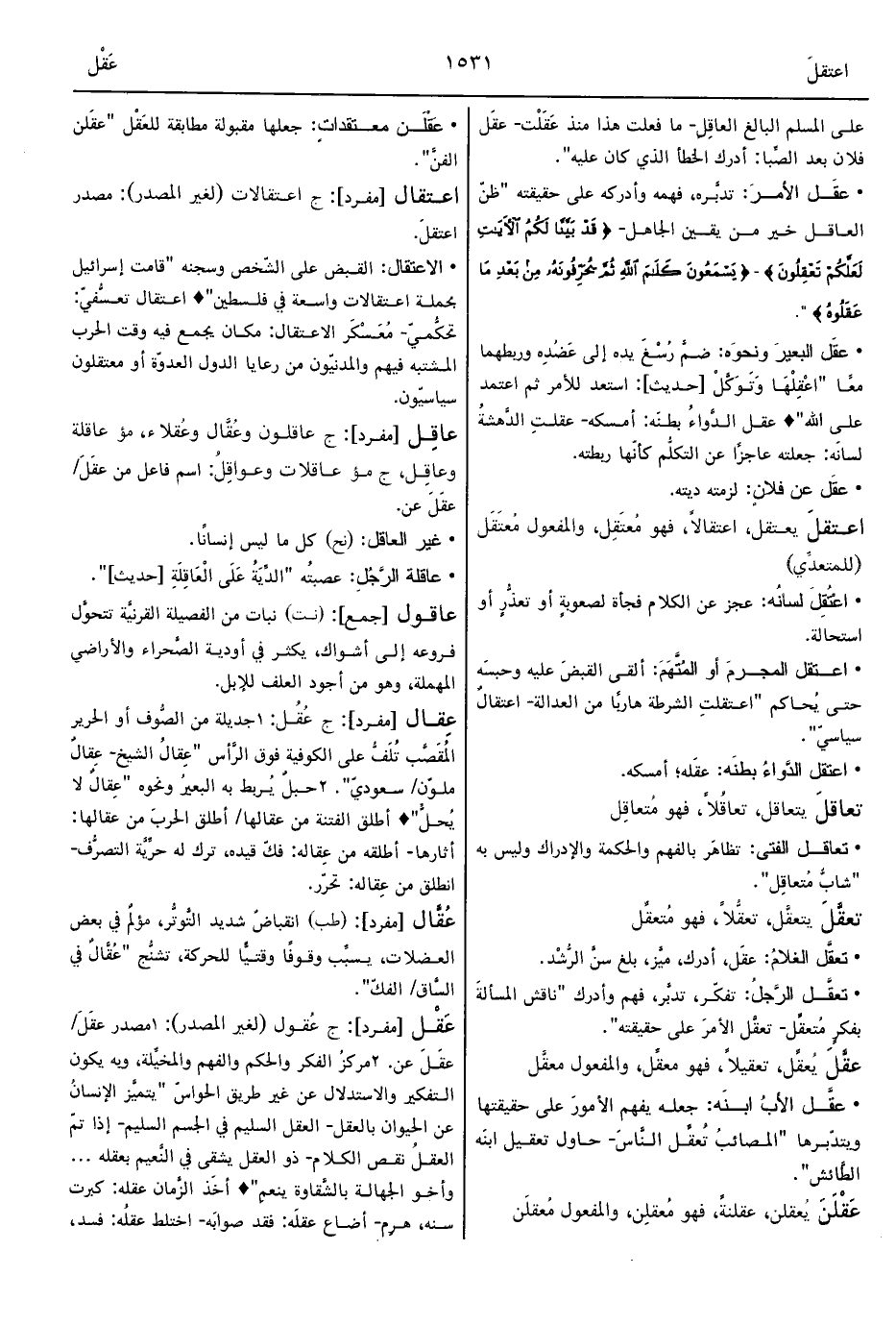 • تعقَّل الغلامُ: عقَل، أدرك، ميَّز، بلغ سنَّ الرُّشْد.
