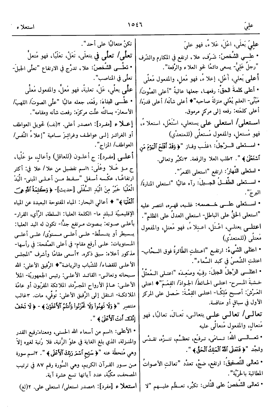• تعالى اللهُ: تسامَى، ترفّع، تعظَّم، تنزَّه، تقدَّس وتمجَّد " {فَتَعَالَى اللهُ الْمَلِكُ الْحَقُّ} ".