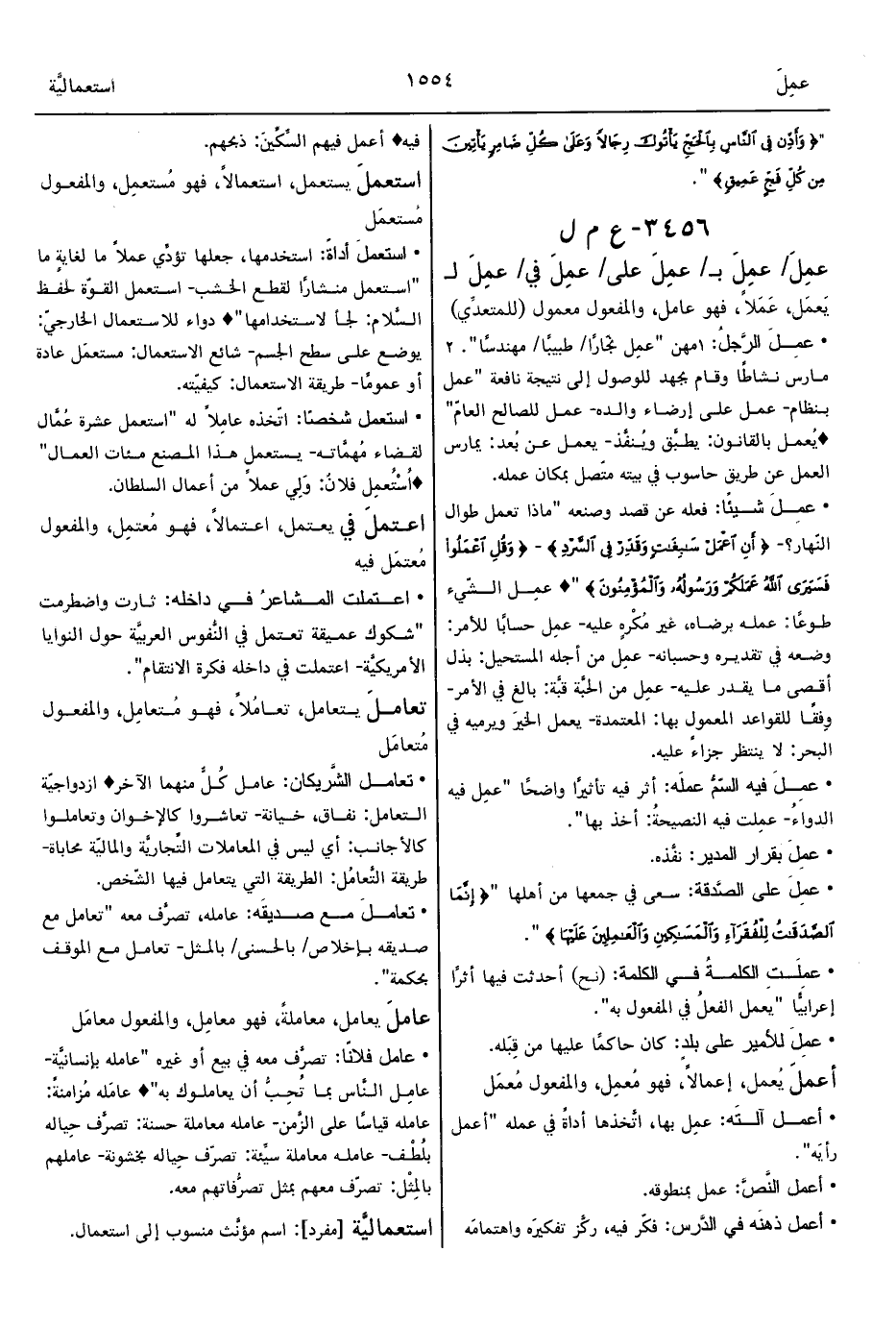 • عمِلَ على الصَّدقة: سعى في جمعها من أهلها " {إِنَّمَا الصَّدَقَاتُ لِلْفُقَرَاءِ وَالْمَسَاكِينِ وَالْعَامِلِينَ عَلَيْهَا} ".