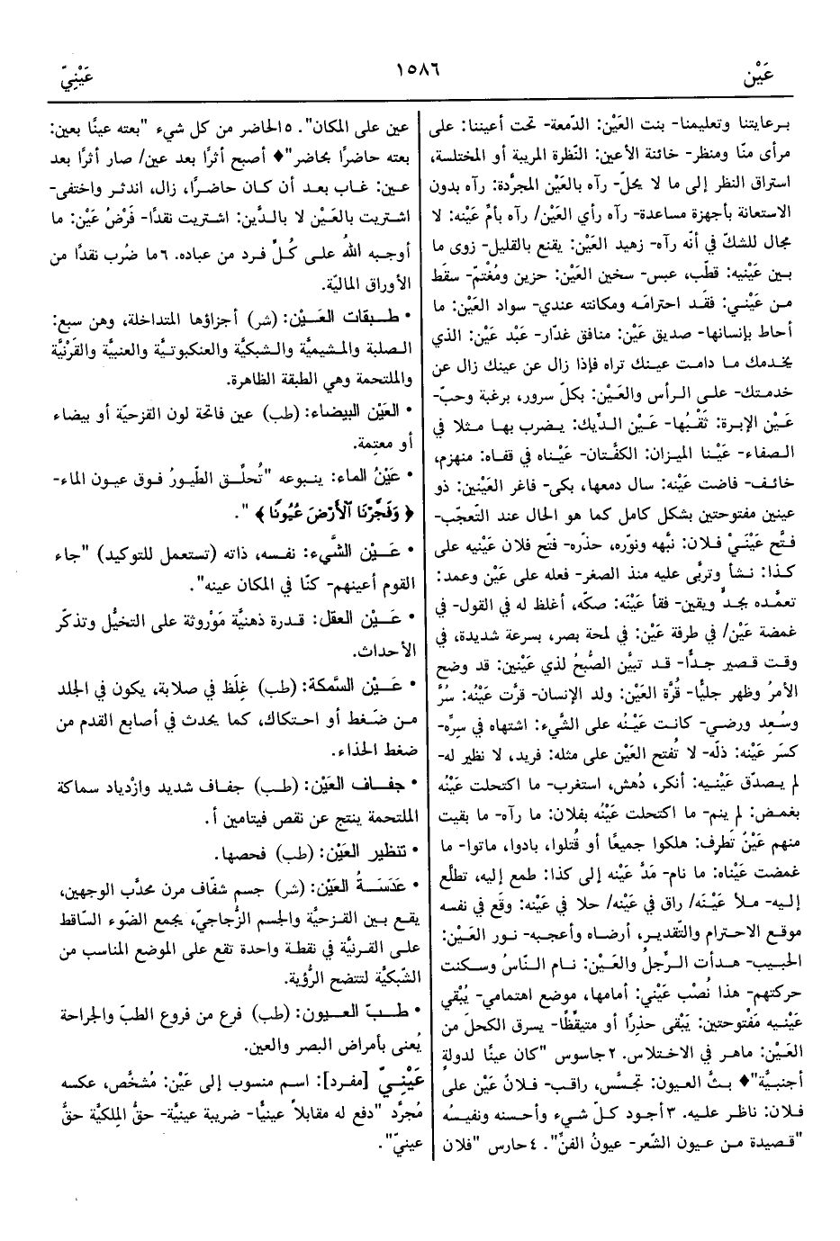 عَيْنِيّ [مفرد]: اسم منسوب إلى عَيْن: مُشخَّص، عكسه مُجرَّد "دفع له مقابلاً عينيًّا- ضريبة عينيَّة- حقُّ المِلكيَّة حقٌّ عينيّ".