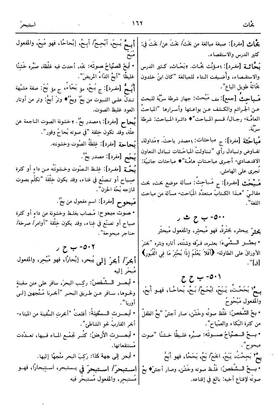 -[163]- • استبحر الخطيبُ أو الشَّاعرُ: اتَّسع له القَوْل وانبسط "استبحر الباحثُ في محاضرته".