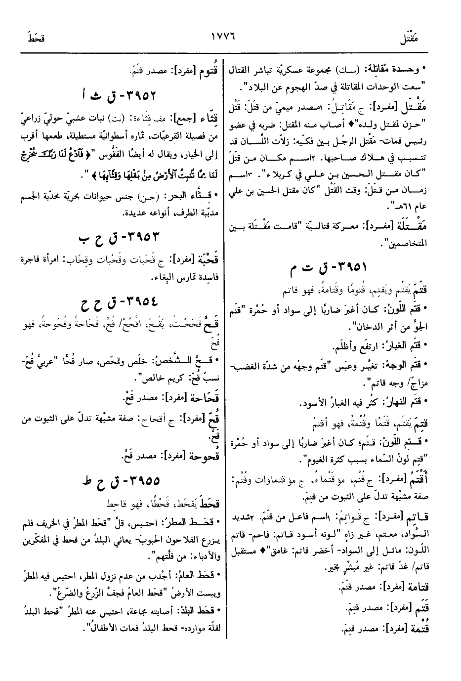 • قتَم الوجهُ: تغيَّر وعبَس "قتَم وجهُه من شدّة الغضب- مزاجٌ/ وجه قاتم".