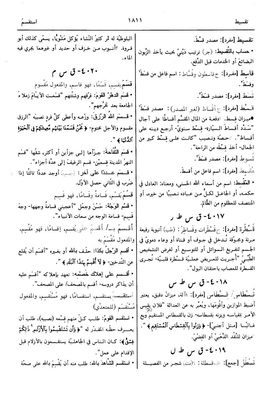 1 - مصدر قسَطَ1 ° ميزان قِسط.