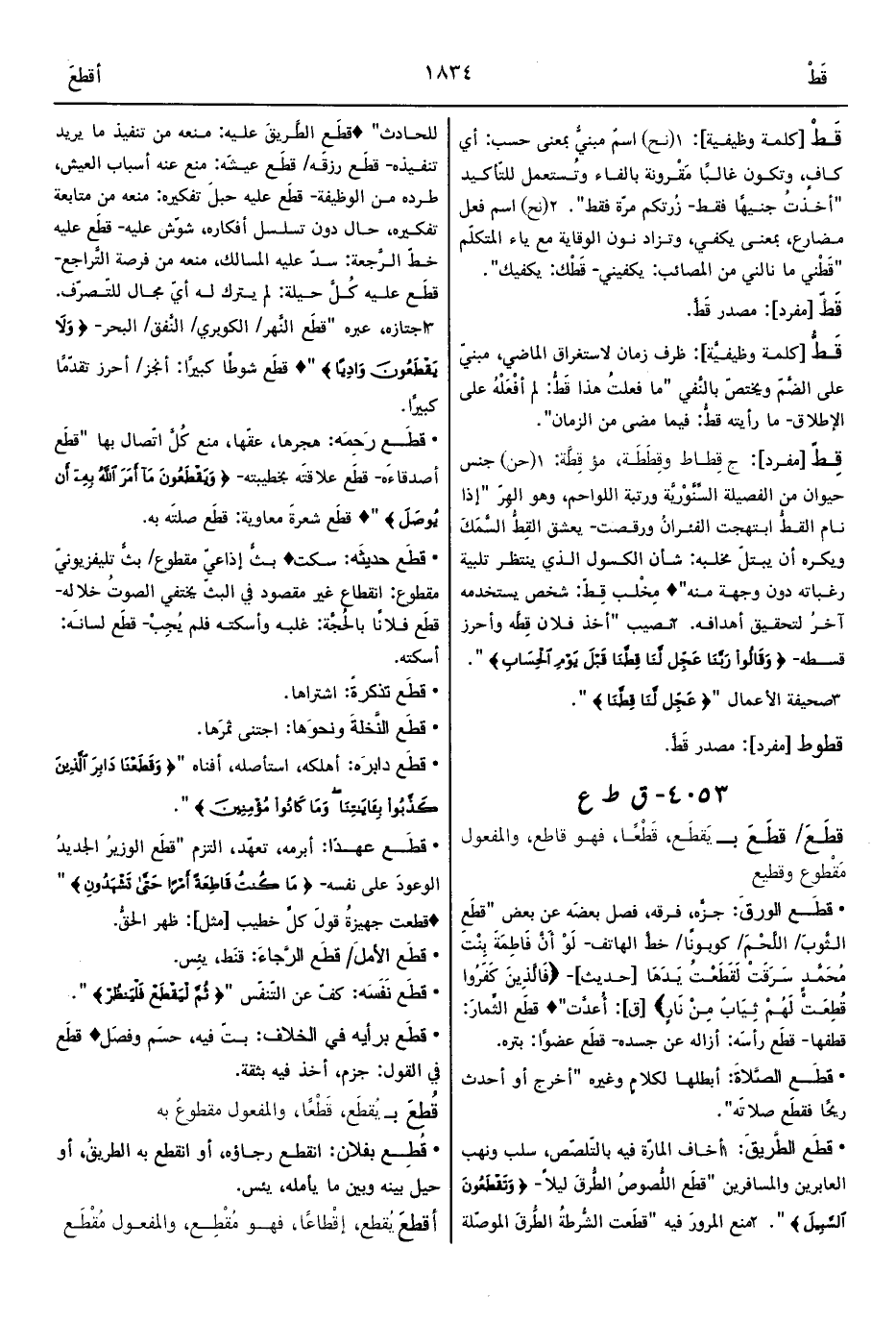 2 - نصيب "أخذ فلان قِطَّه وأحرز قسطه- {وَقَالُوا رَبَّنَا عَجِّلْ لَنَا قِطَّنَا قَبْلَ يَوْمِ الْحِسَابِ} ".