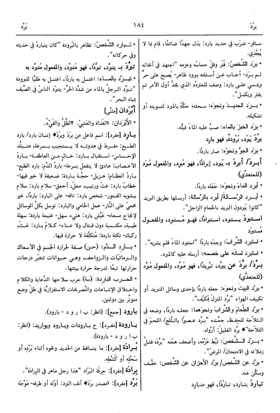 • تبارد الشَّخصُ: تظاهر بالبُرودة "كان يتباردُ في حديثه وفي حركاته".