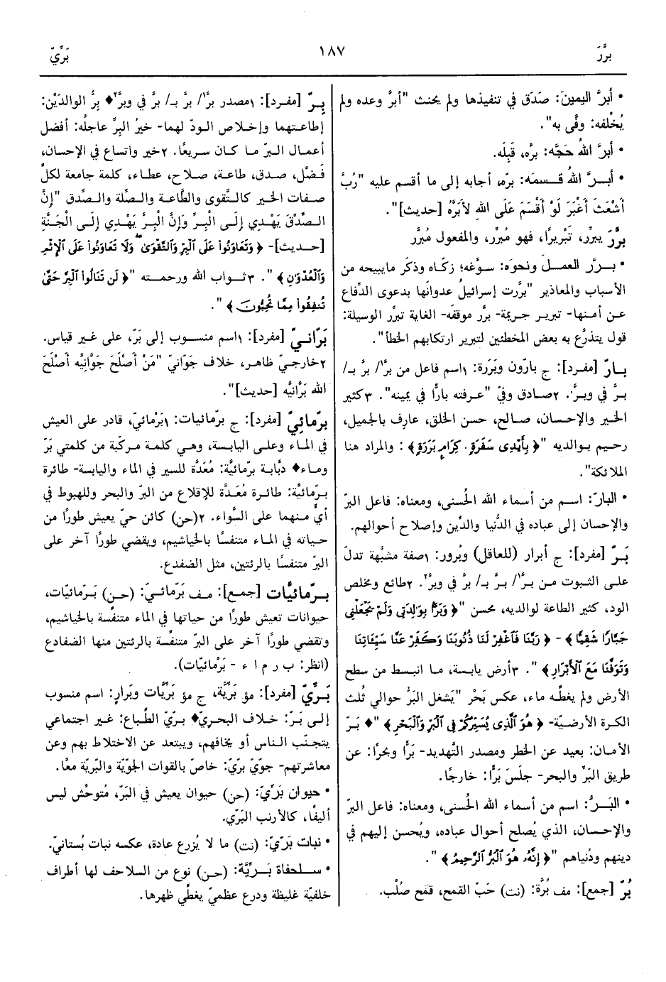1 - صفة مشبَّهة تدلّ على الثبوت من برَّ1/ برَّ بـ/ برَّ في وبرَّ2.