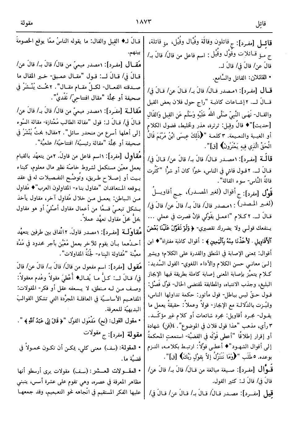 • مقول القول: (نح) مَفْعُول القوْل " {قَالَ إِنِّي عَبْدُ اللهِ} ".