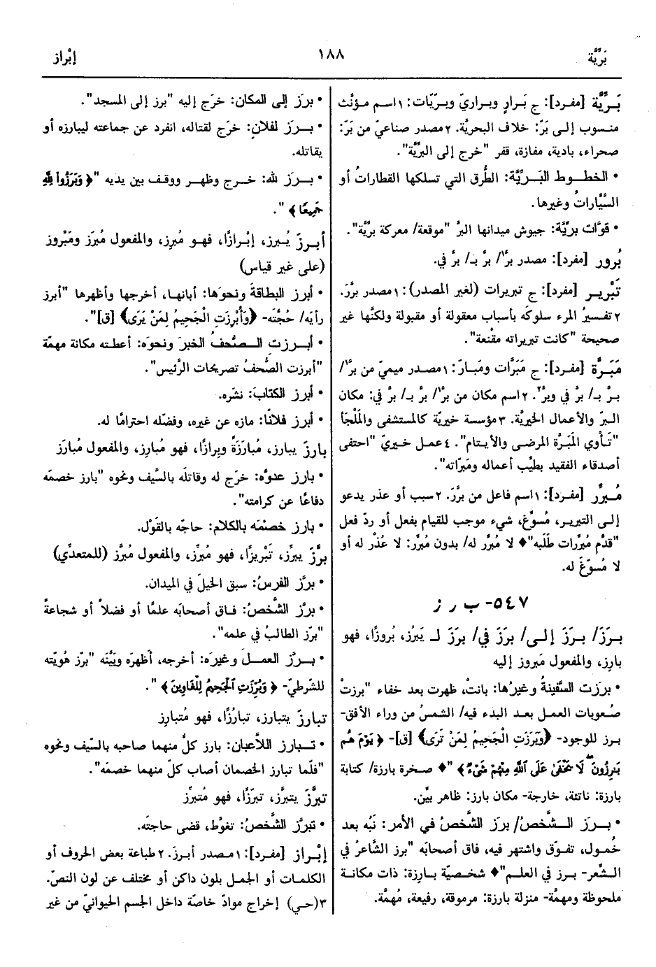 • برَز للَّه: خرج وظهر ووقف بين يديه " {وَبَرَزُوا لِلَّهِ جَمِيعًا} ".