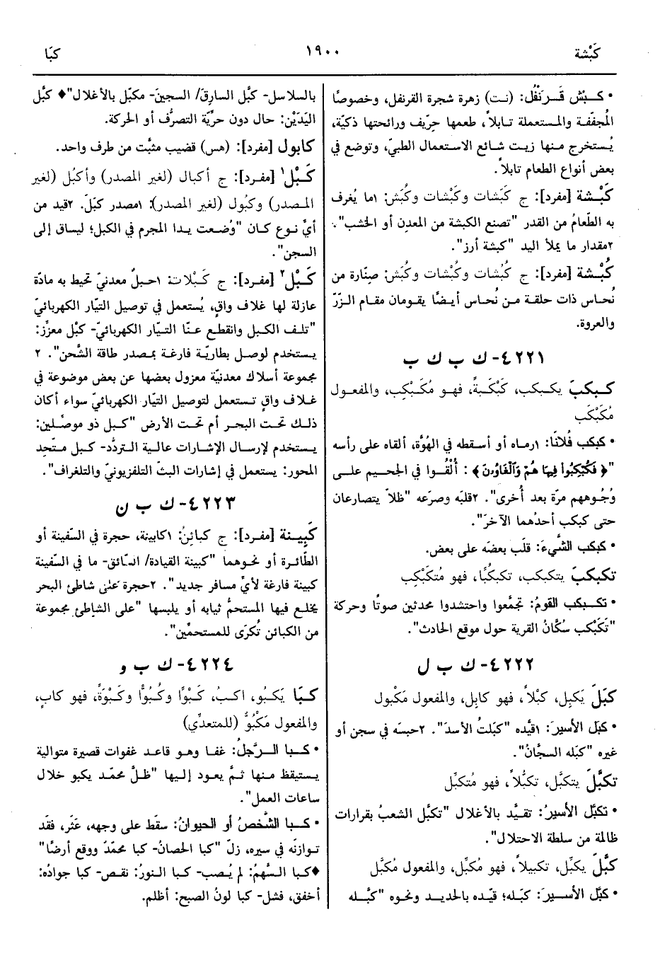 1 - رماه أو أسقطه في الهُوَّة، ألقاه على رأسه " {فَكُبْكِبُوا فِيهَا هُمْ وَالْغَاوُونَ}: أُلْقُوا في الجحيم على وُجُوههم مرّة بعد أُخرى".