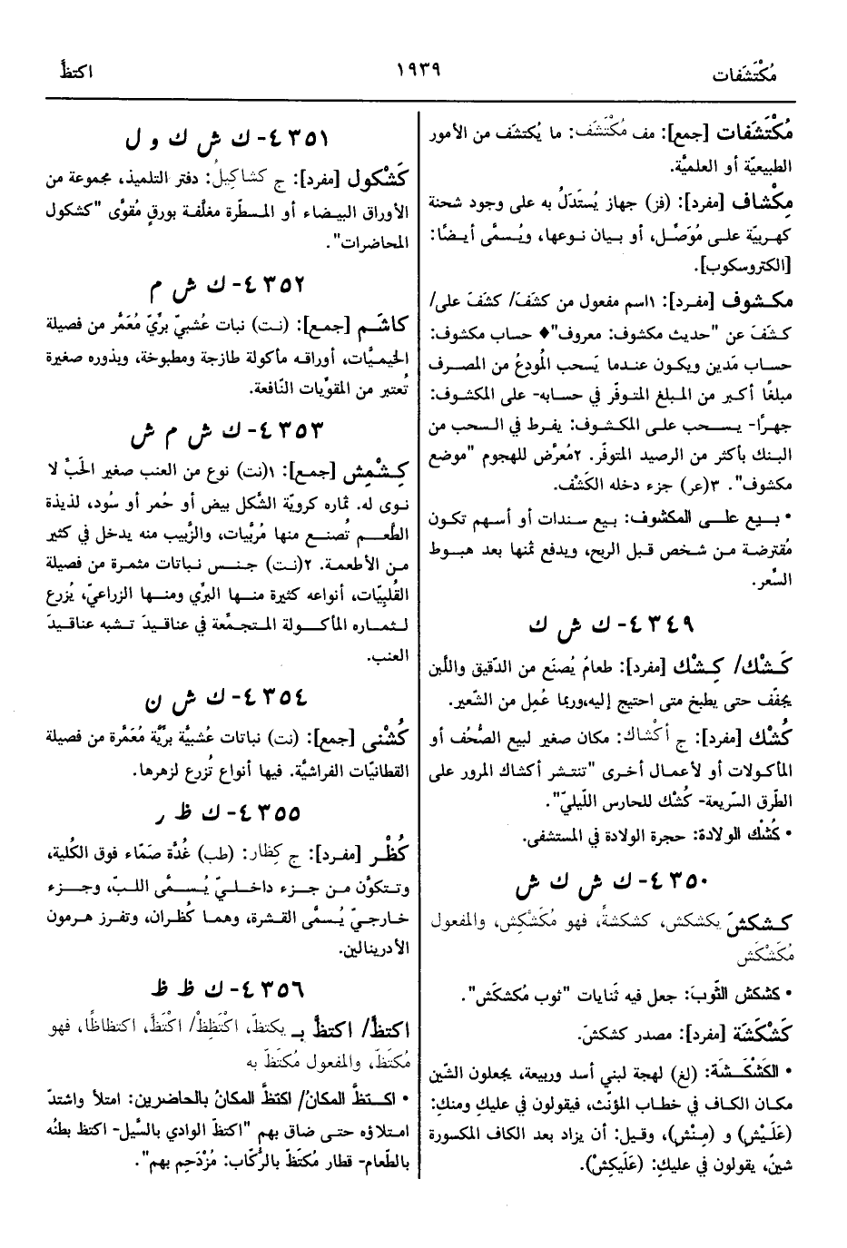 كاشَم [جمع]: (نت) نبات عُشبيّ برِّيّ مُعَمَّر من فصيلة الخيميَّات، أوراقه مأكولة طازجة ومطبوخة، وبذوره صغيرة تُعتبر من المقوِّيات النّافعة.