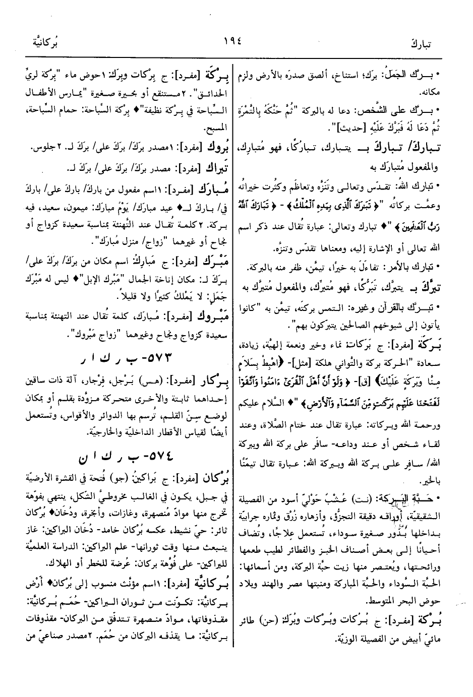 • تبرَّك بالقرآن وغيره: التمس بركتَه، تيمَّن به "كانوا يأتون إلى شيوخهم الصالحين يتبرّكون بهم".