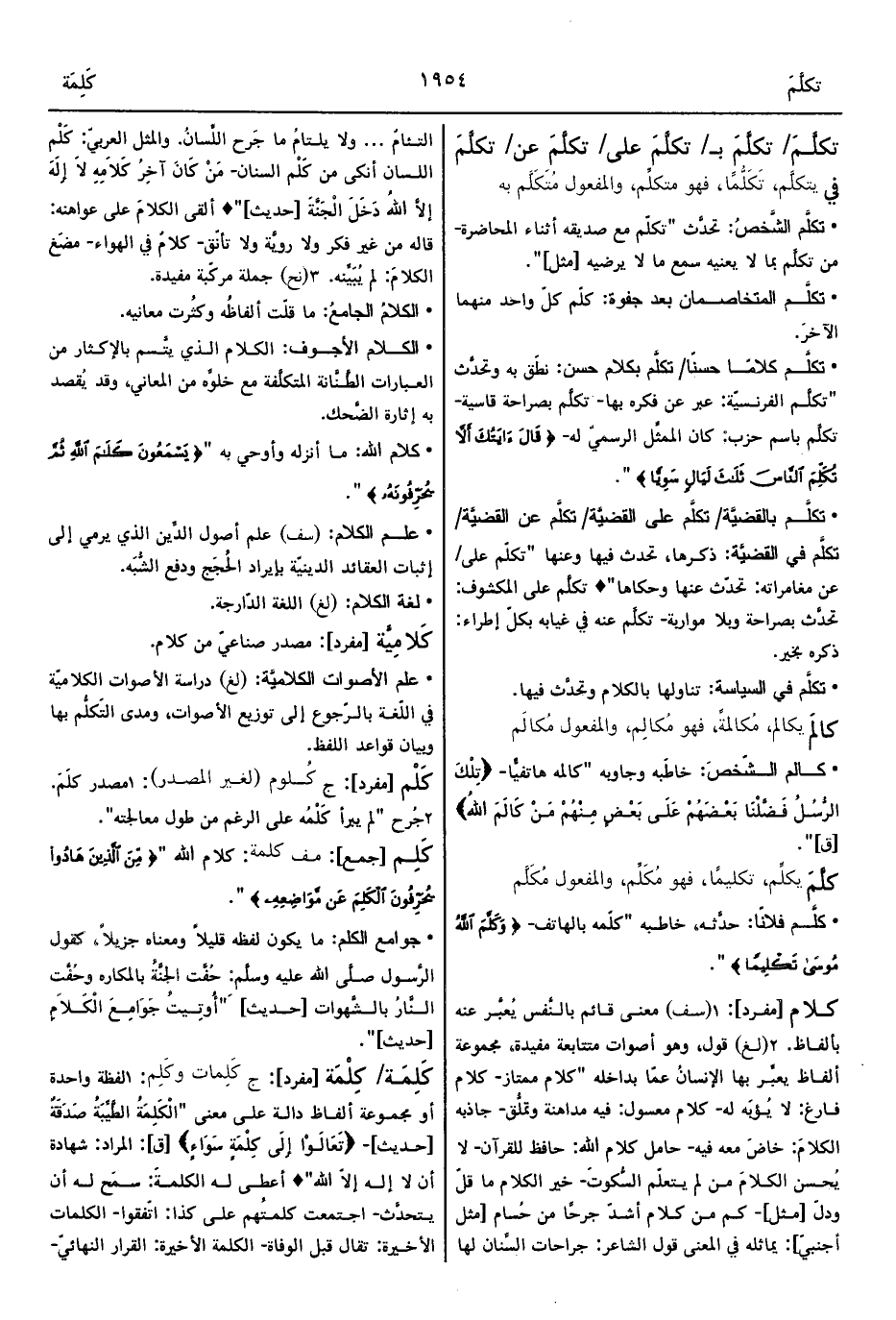 كَلِم [جمع]: مف كلمة: كلام الله " {مِنَ الَّذِينَ هَادُوا يُحَرِّفُونَ الْكَلِمَ عَنْ مَوَاضِعِهِ} ".