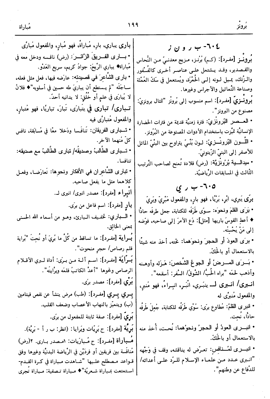 • بارى الفريقَ الزَّائرَ: (رض) نافسه ودخل معه في مُباراة ° يباري الرِّيحَ: جوادٌ كريم، سريع العَدْو.