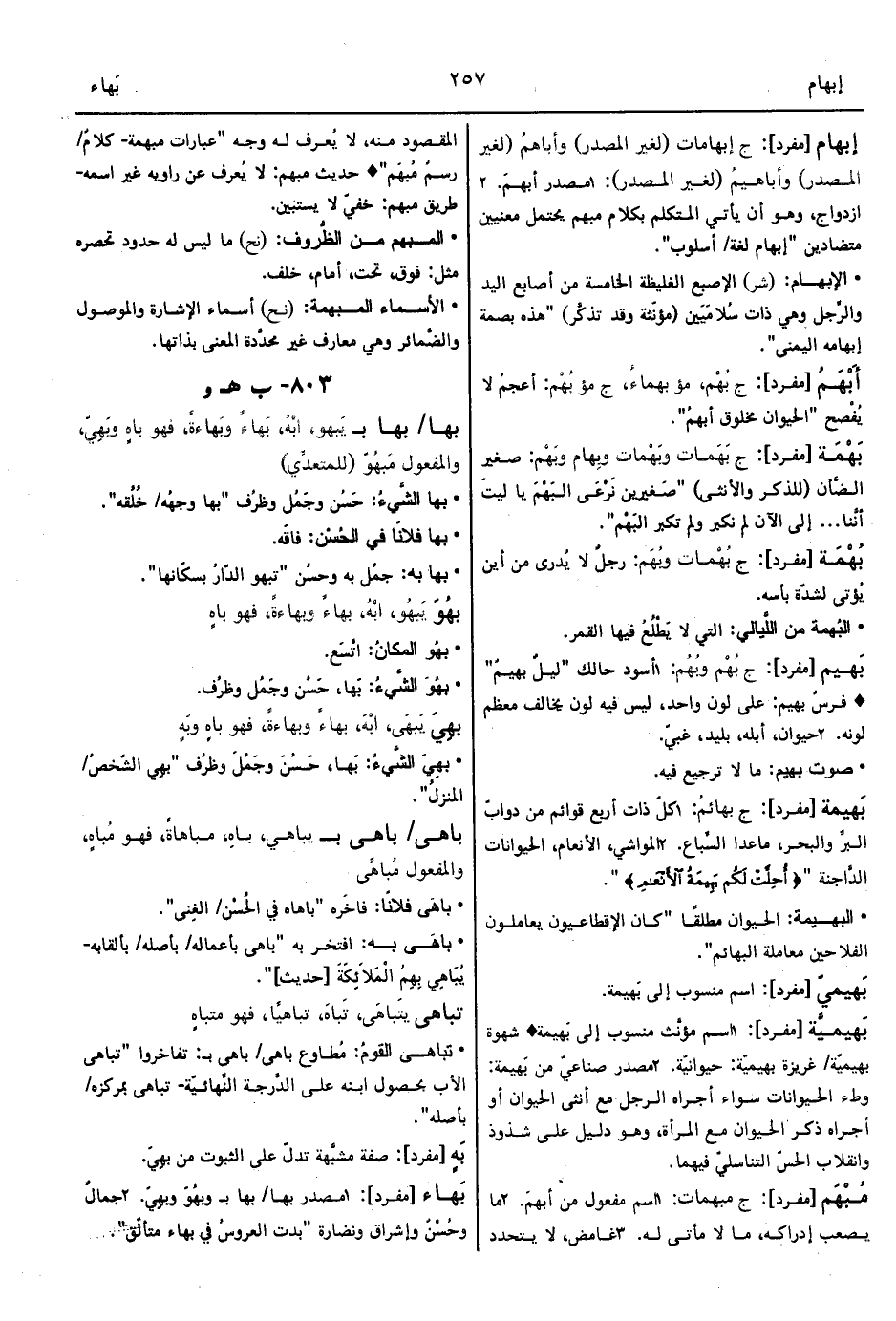 1 - مصدر بها/ بها بـ وبهُوَ وبهِيَ.