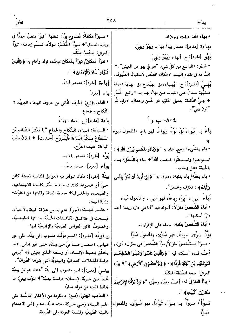 • بَوَّأ المنزلَ له: أعدَّه وهيَّأه وجهَّزه " {وَإِذْ بَوَّأْنَا لإِبْرَاهِيمَ مَكَانَ الْبَيْتِ} ".