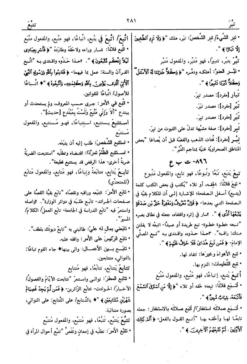 • تبَّر العدوَّ: أهلكه ودمَّره " {وَكُلاًّ ضَرَبْنَا لَهُ الأَمْثَالَ وَكُلاًّ تَبَّرْنَا تَتْبِيرًا} ".