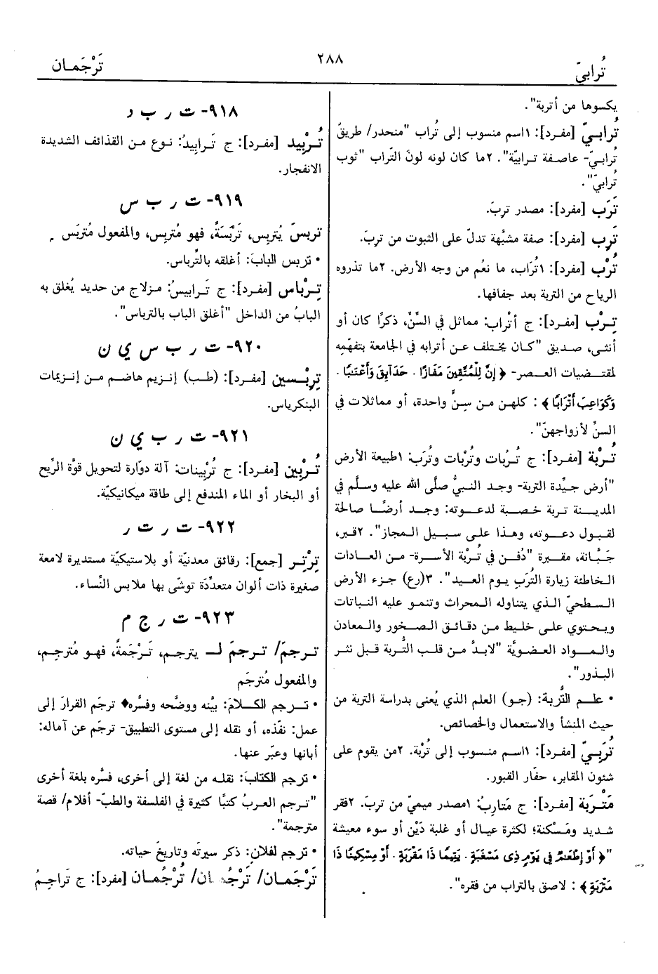 -[289]- وتَراجِمة: مترجم، ناقل الكلام من لغة إلى أخرى "قام التراجمةُ بنقل الفكر اليونانيّ إلى العربية".