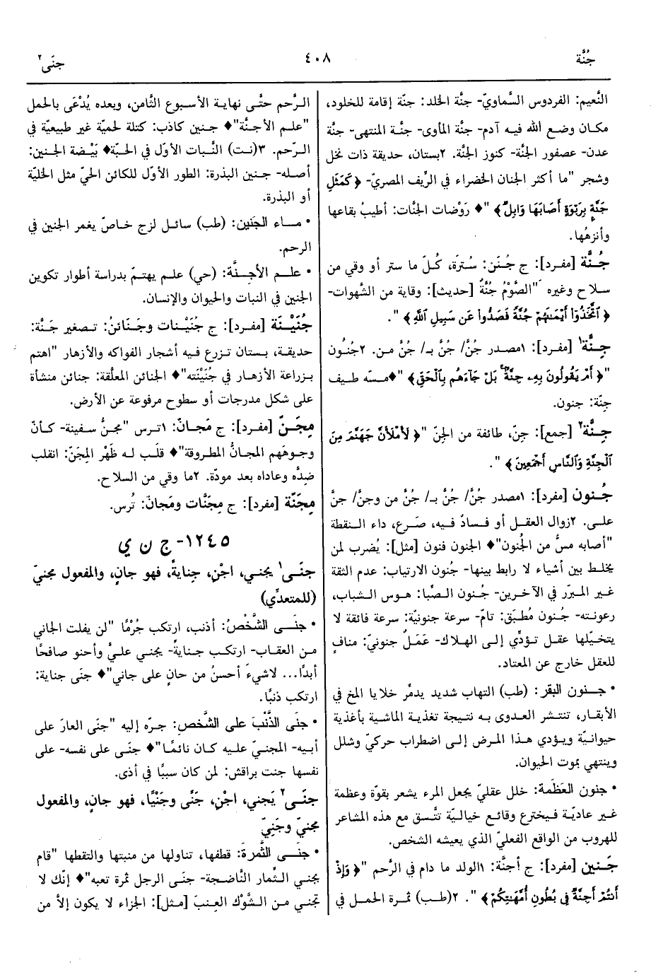 جِنَّة2 [جمع]: جِنّ، طائفة من الجِنّ " {لأَمْلأَنَّ جَهَنَّمَ مِنَ الْجِنَّةِ وَالنَّاسِ أَجْمَعِينَ} ".