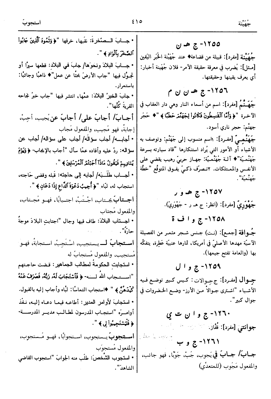 • جابَ الصَّخرةَ: نقَبها، خرقها " {وَثَمُودَ الَّذِينَ جَابُوا الصَّخْرَ بِالْوَادِ} ".