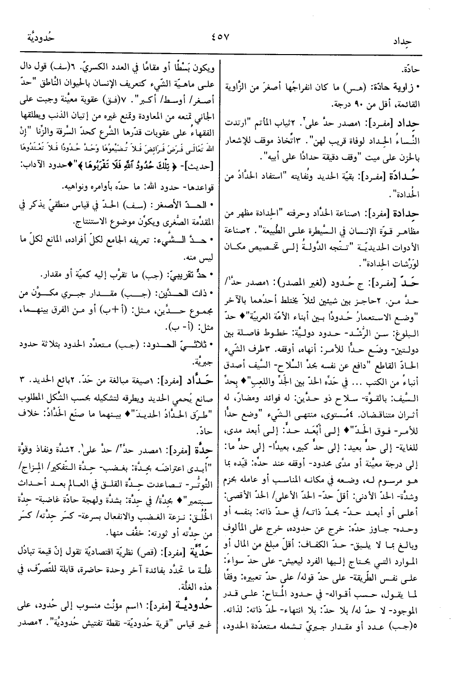 • حدَّ الشَّيء: تعريفه الجامع لكلّ أفراده، المانع لكلّ ما ليس منه.