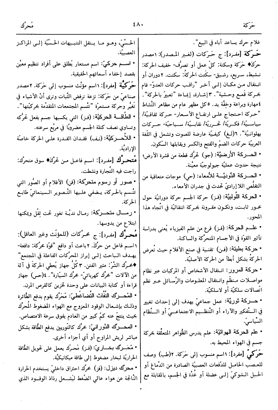 1 - مصدر حرُكَ ° حَرَكة وسكنة: كلّ عمل أو تصرُّف- خفيف الحركة: نشيط، سريع، رشيق- سكَتت الحركةُ: سكنت.