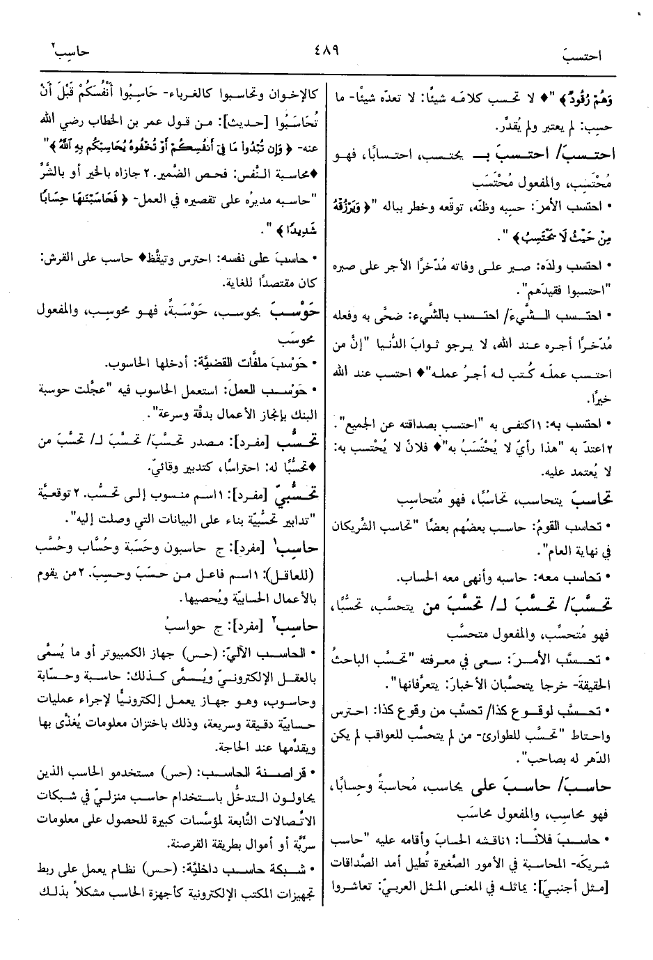 • الحاسب الآليّ: (حس) جهاز الكمبيوتر أو ما يُسمَّى بالعقل الإلكترونيّ ويُسمَّى كذلك: حاسبة وحسّابة وحاسوب، وهو جهاز يعمل إلكترونيًّا لإجراء عمليات حسابيّة دقيقة وسريعة، وذلك باختزان معلومات يُغذَّى بها ويقدِّمها عند الحاجة.