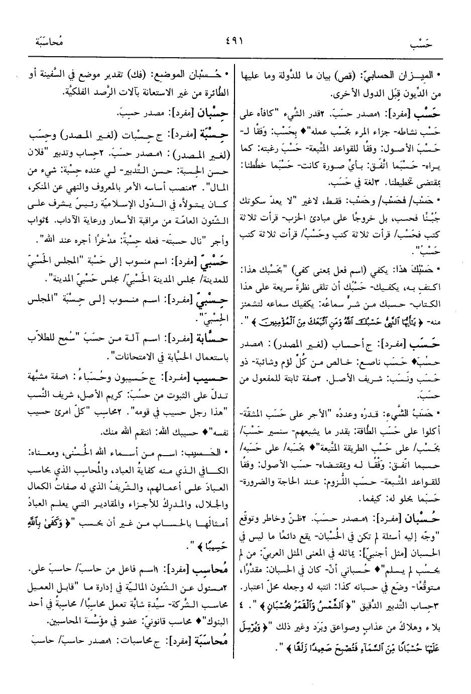 • حَسَبُ الشَّيءِ: قدرُه وعددُه "الأجر على حَسَب المشقّة- أكلوا على حَسَب الطَّاقة: بقدر ما يشبعهم- سنسير حَسْبَ/ بحَسْب/ على حَسْب الطريقة المتَّبعة" ° بحَسَبه/ على حَسَبه: وَفْقًا له وبمقتضاه- حسَب الأصول: وفقًا للقواعد المتَّبعة- حسَب اللُّزوم: عند الحاجة والضرورة- حَسبَما يحلو له: كيفما.