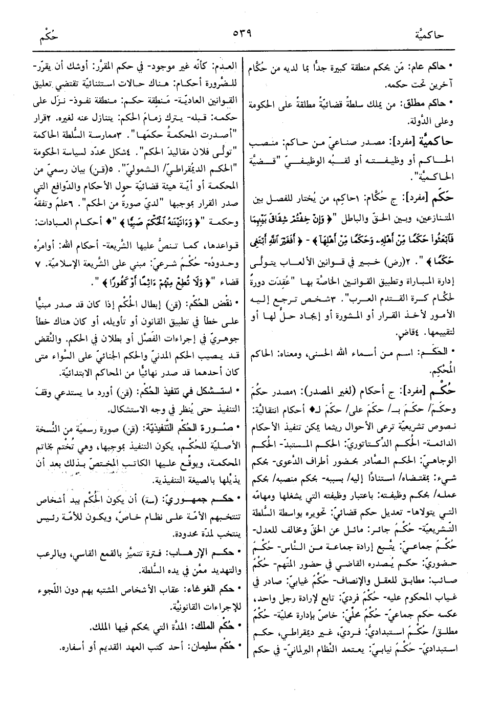 1 - حاكِم، من يُختار للفصل بين المتنازعين، وبين الحقّ والباطل " {وَإِنْ خِفْتُمْ شِقَاقَ بَيْنِهِمَا فَابْعَثُوا حَكَمًا مِنْ أَهْلِهِ وَحَكَمًا مِنْ أَهْلِهَا} - {أَفَغَيْرَ اللهِ أَبْتَغِي حَكَمًا} ".