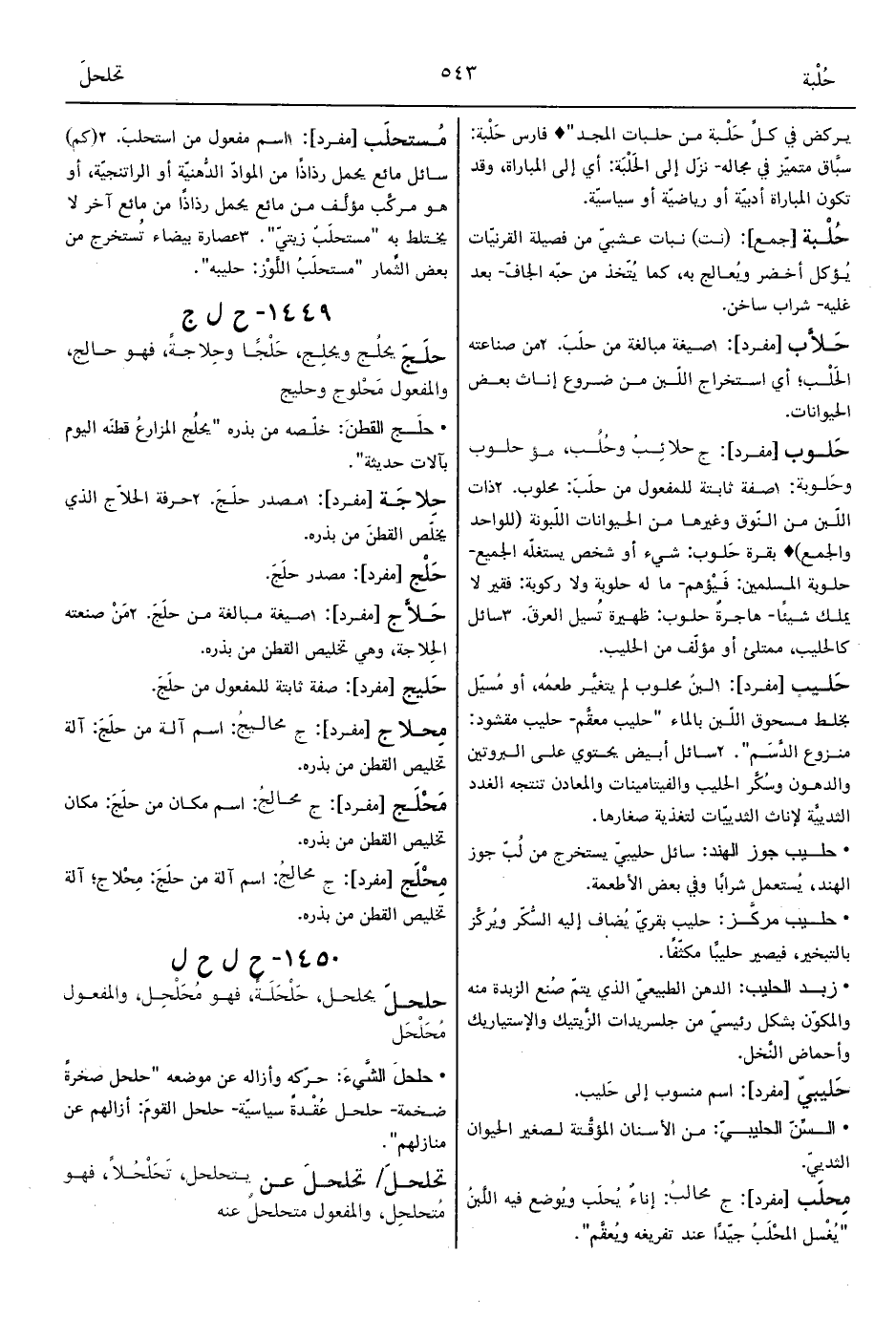 2 - سائل أبيض يحتوي على البروتين والدهون وسُكَّر الحليب والفيتامينات والمعادن تنتجه الغدد الثدييَّة لإناث الثدييّات لتغذية صغارها.