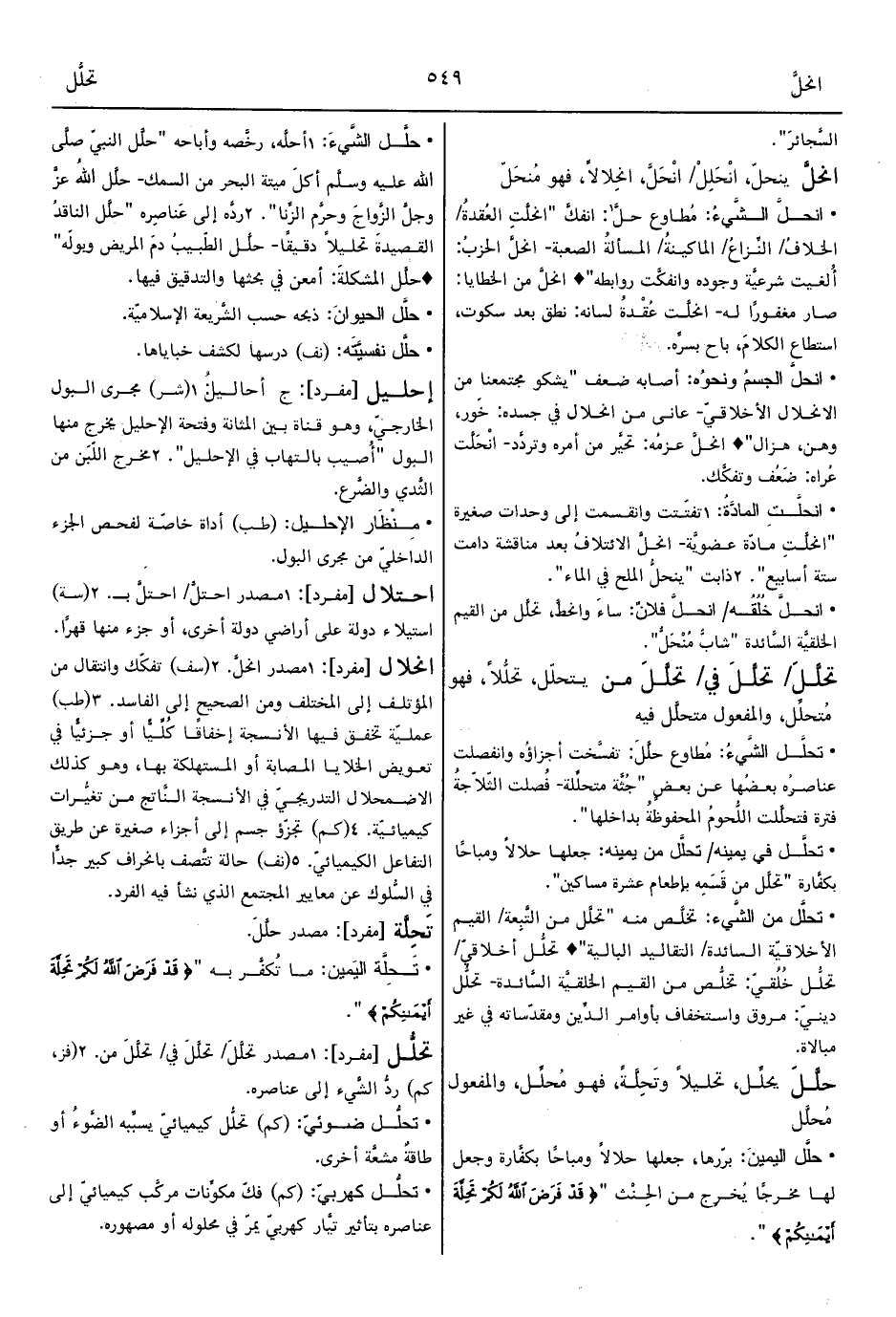 • تَحِلَّة اليَمين: ما تُكفَّر به " {قَدْ فَرَضَ اللهُ لَكُمْ تَحِلَّةَ أَيْمَانِكُمْ} ".