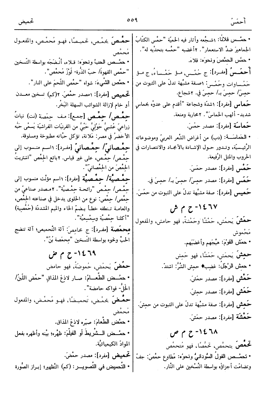 حِمَّص/ حِمِّص [جمع]: مف حِمّصة: (نت) نباتٌ زراعيّ عُشبيٌّ حَوْلِيٌّ حَبِّيٌّ من القرنيّات الفراشيّة يُسمَّى حَبُّه الأخضرُ في مصر: مَلانة، تؤكل حبَّاته مطبوخة ومسلوقة.