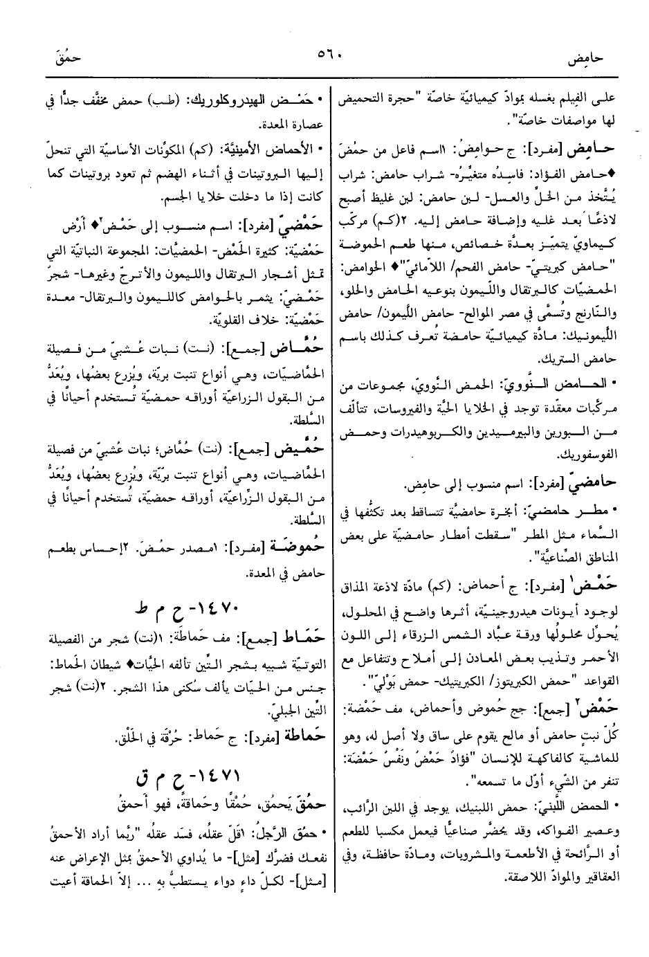 2 - (كم) مركّب كيماويّ يتميّز بعدَّة خصائص، منها طعم الحموضة "حامض كبريتيّ- حامض الفحم/ اللاّمائيّ" ° الحوامض: الحمضيّات كالبرتقال واللّيمون بنوعيه الحامض والحلو، والنّارنج وتُسمَّى في مصر الموالح- حامض اللَّيمون/ حامض اللَّيمونيك: مادَّة كيميائيّة حامضة تُعرف كذلك باسم حامض الستريك.