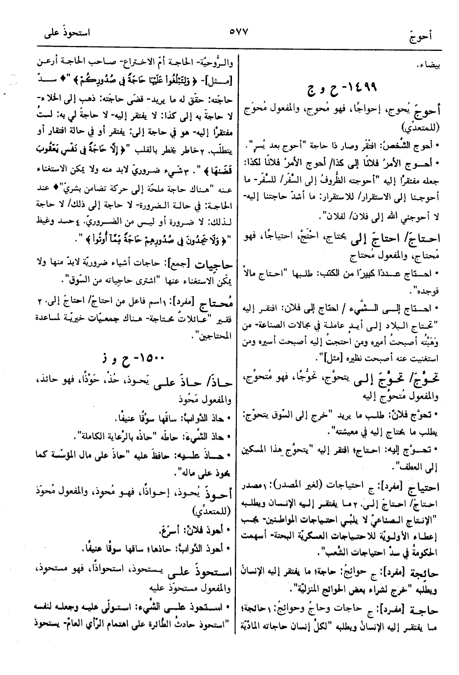 • تحوَّج إليه: احتاج؛ افتقر إليه "يتحوَّج هذا المسكين إلى العطف".