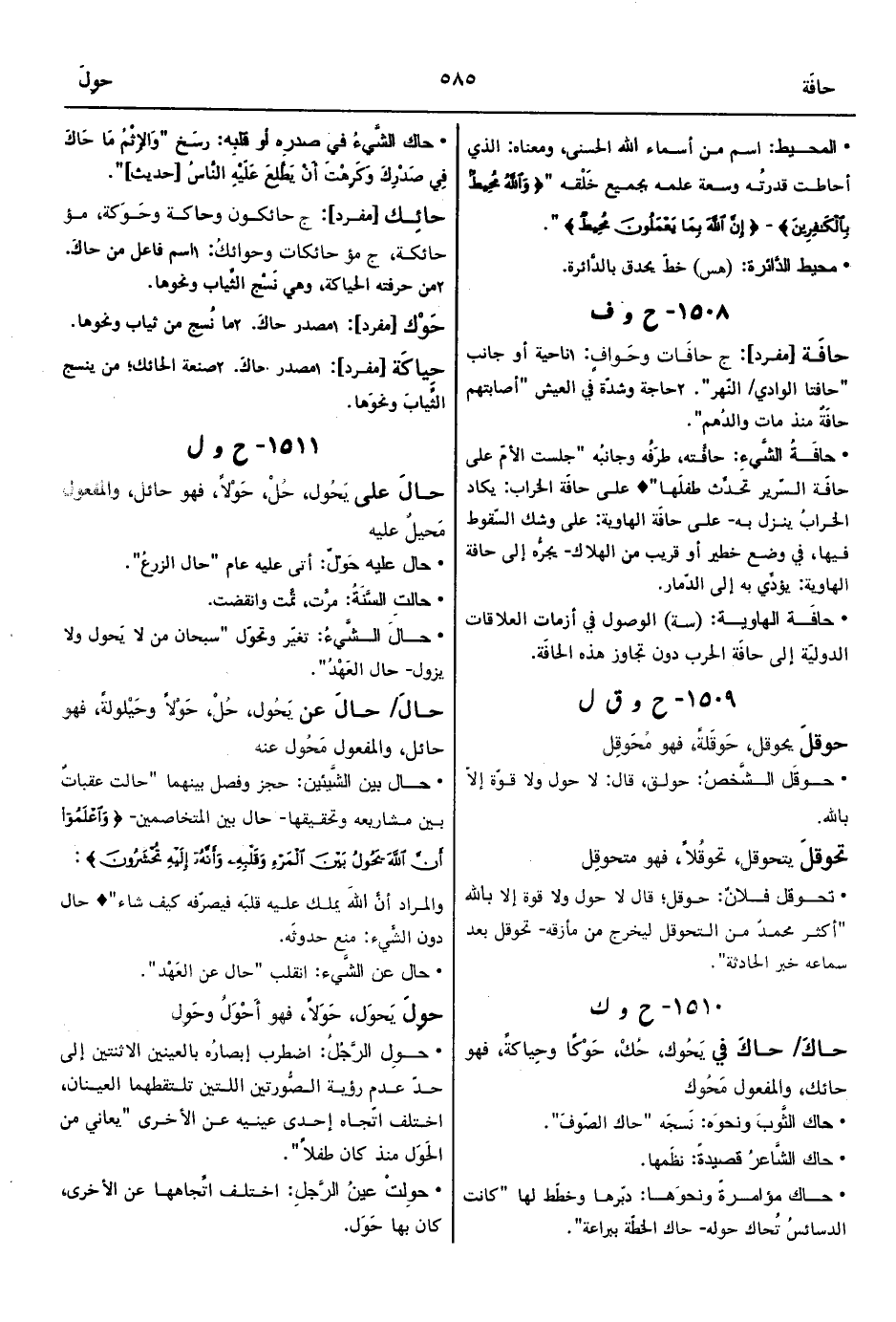 • حال عليه حَوْلٌ: أتى عليه عام "حال الزرعُ".