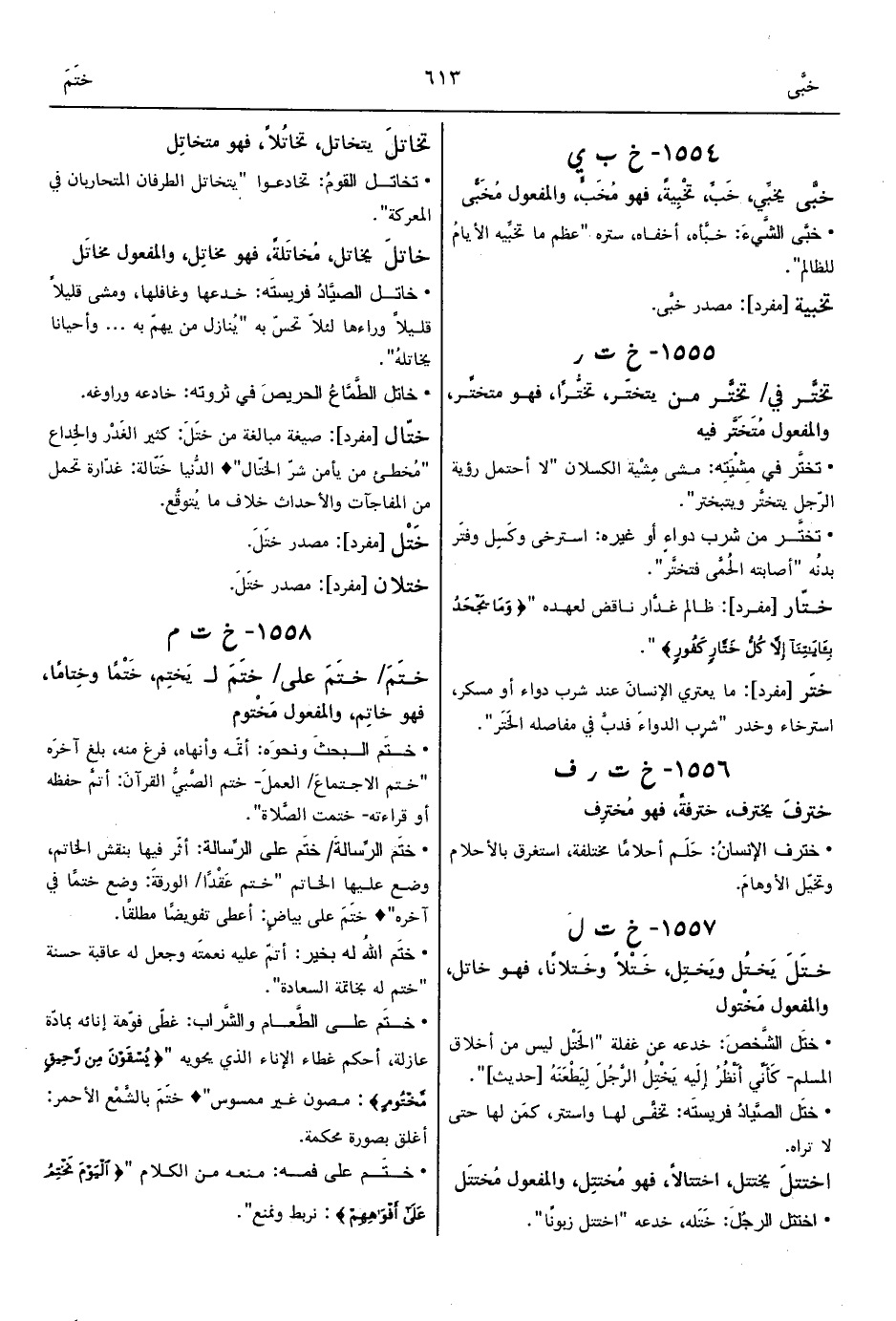 -[614]- • ختَم على قلبه: جعله لا يفهم شيئا كأنّه غطّاه، طبع عليه " {خَتَمَ اللهُ عَلَى قُلُوبِهِمْ}: صرفها عن الحقّ ووسمها بسِمَة الكفر"? ختَمَ فلان عليك بابه: إذا أعرض عنك.
