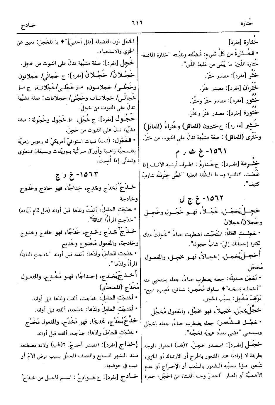 • خدَجَتِ الحامِلُ: ألقَتْ ولدَها قبل أوانه (قبل تمام أيّامه) "خدَجتِ المرأةُ/ الناقةُ".