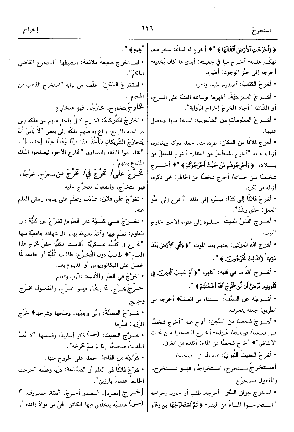 • استخرجَ جوازَ السَّفر: أخرجه، طلب أو حاول إخراجه "استخرجوا الماءَ من البئر- {ثُمَّ اسْتَخْرَجَهَا مِنْ وِعَاءِ أَخِيهِ} ".