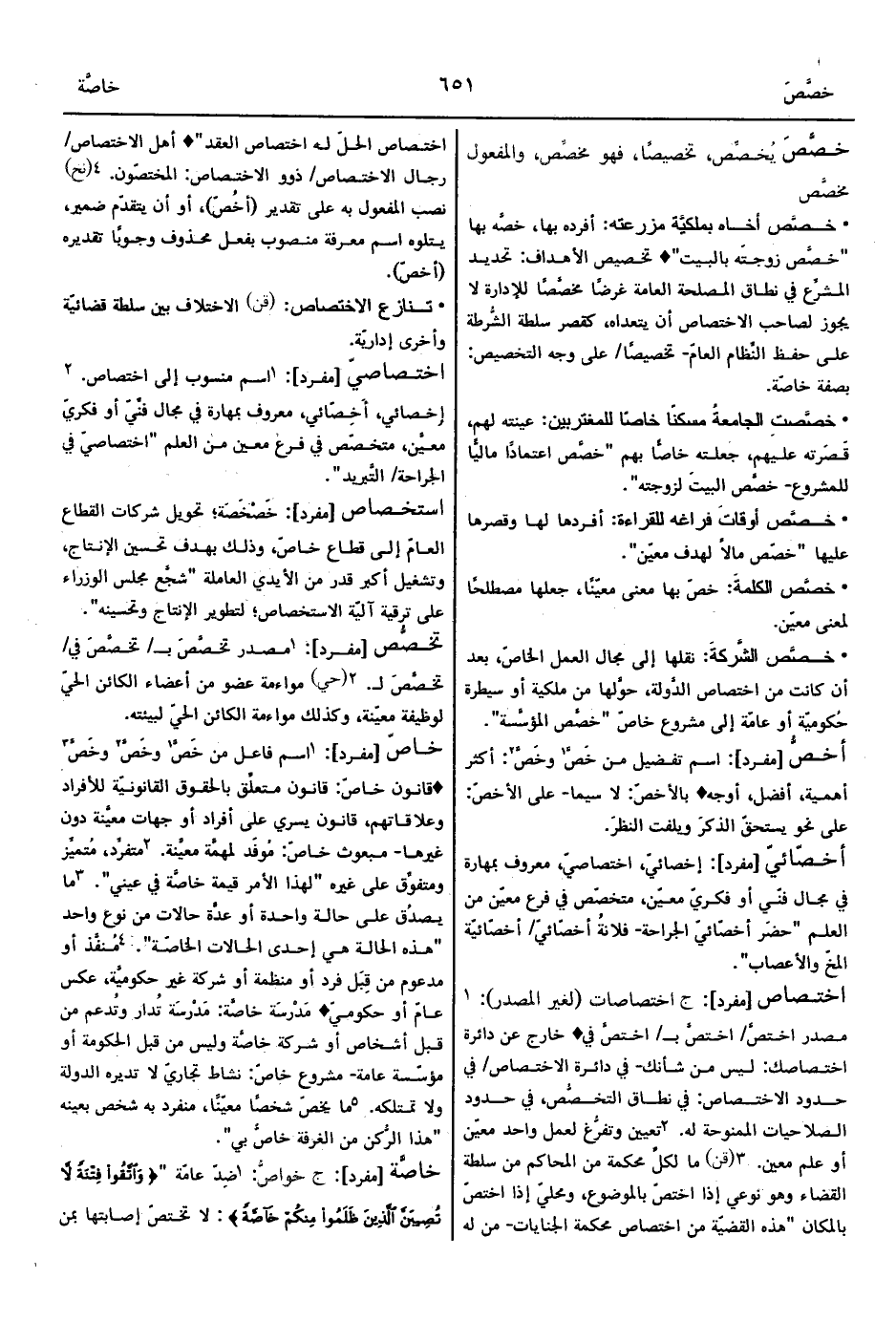 • الخاصَّة: خلاف العامّة، الطَّبقة الاجتماعيَّة العليا، وجهاء القوم وأكابرهم، أشرافهم "الصفوف الأولى محجوزة للخاصّة" ° خاصّة النَّاس وعامّتهم: كلُّهم.