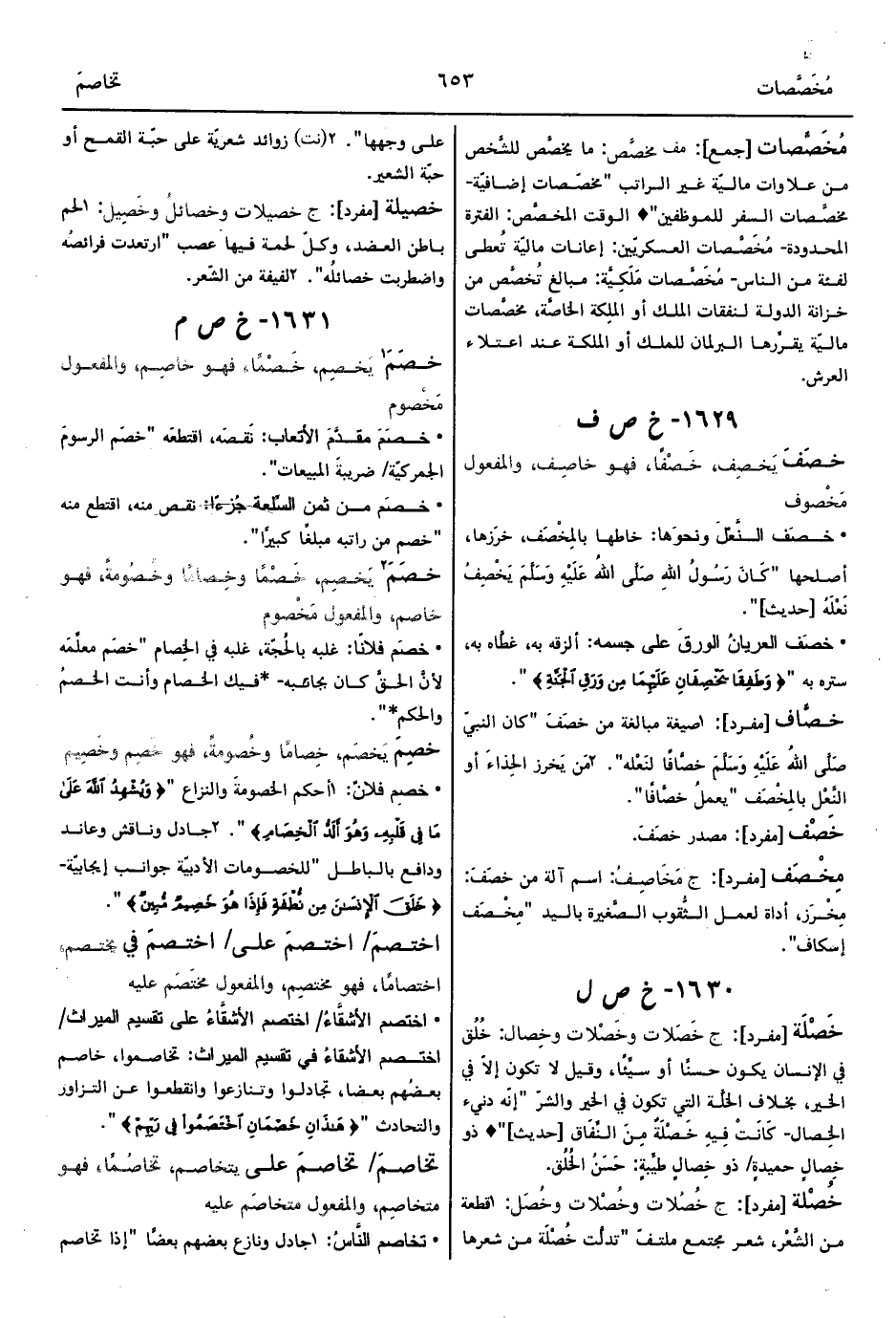 • تخاصم النَّاسُ/ تخاصم النَّاسُ على الشَّيء: تنازعوا أمام هيئة المحكمة "تخاصموا على ملكيّة مزرعة".