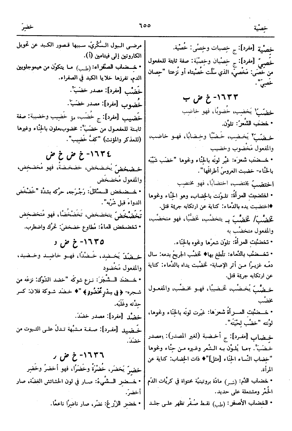 • الخِضاب الأصفر: (طب) نقط صُفْر تظهر على جلد مرضى البول السُّكَّريّ، سببها قصور الكبد عن تحويل الكاروتين إلى فيتامين (أ).