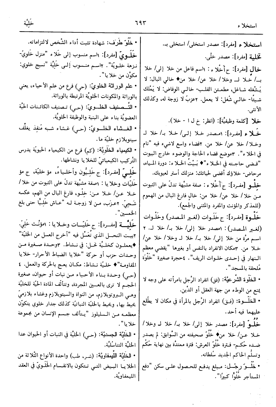 خَلِيّ [مفرد]: ج خَلِيُّون وأخلياءُ، مؤ خليّة، ج مؤ خَليّات وخلايا: