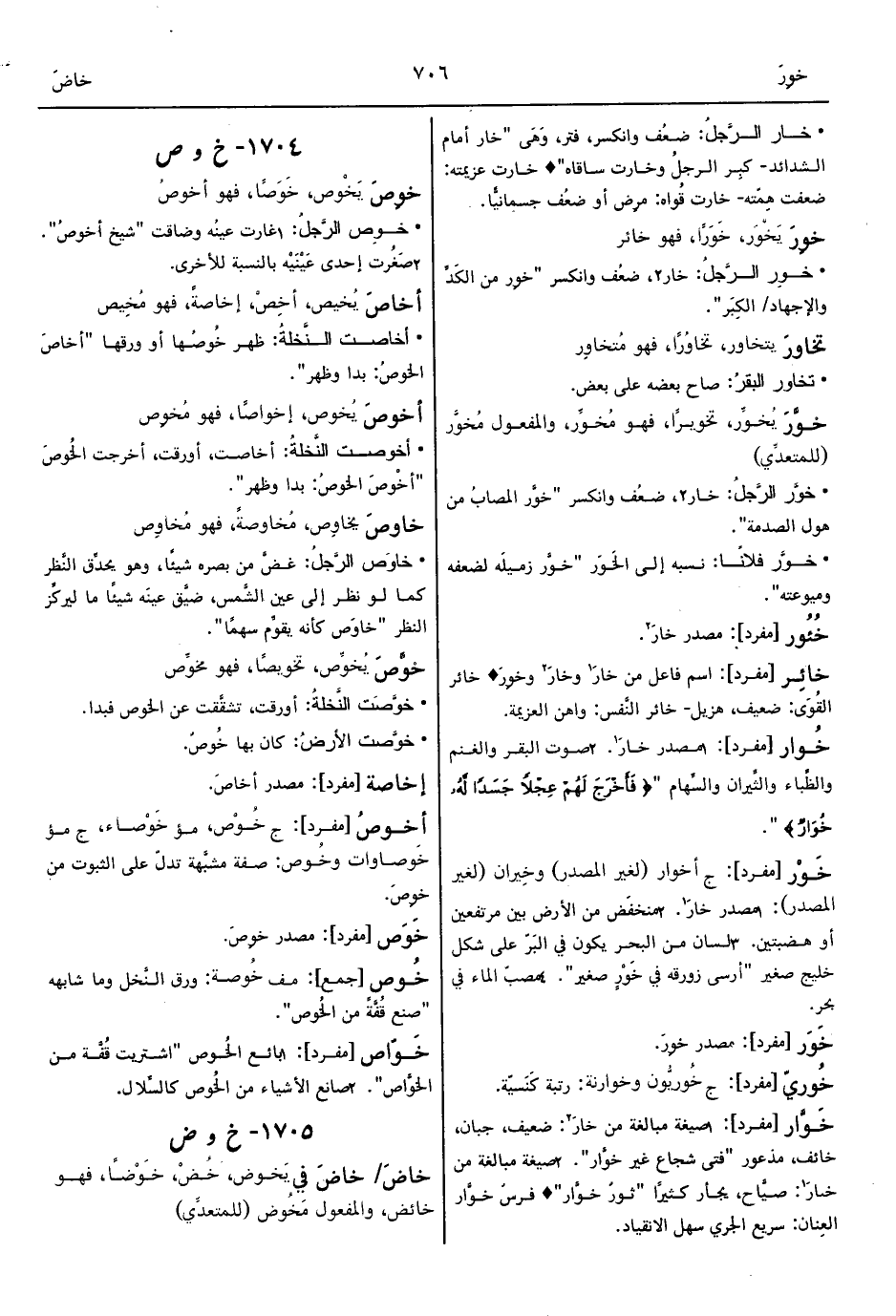 -[707]- • خاض القومُ: أمعنوا في الباطل وتوغَّلوا فيه " {فَذَرْهُمْ يَخُوضُوا وَيَلْعَبُوا} ".