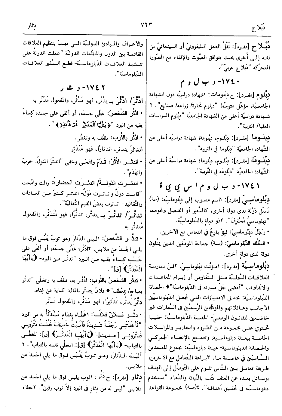 • ادَّثَّر الشَّخصُ: غطَّى جسمَه، أو ألقى على جسده كِساءً يقيه من البرد " {يَاأَيُّهَا الْمُدَّثِّرُ. قُمْ فَأَنْذِرْ} ".