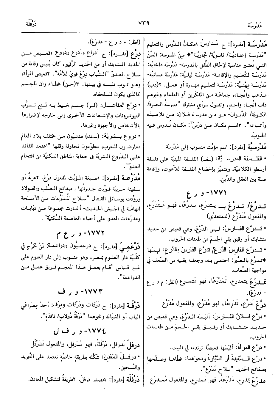 تمدرَعَ يتمدرع، تَمَدْرُعًا، فهو مُتمدرِع (انظر: م د ر ع - تمدرَعَ).