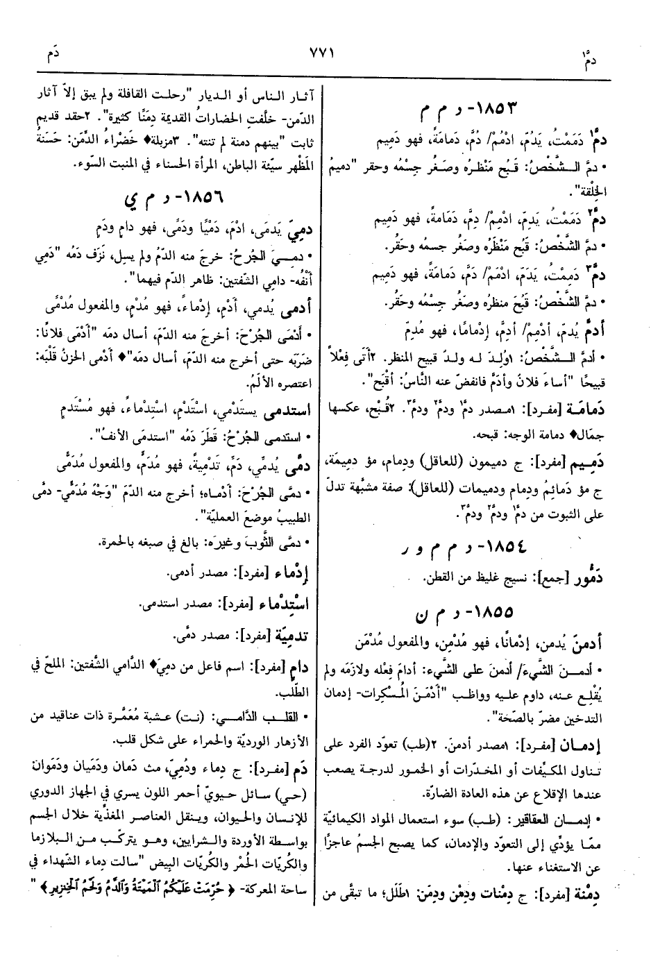 1 - مصدر دمَّ1 ودمَّ2 ودمَّ3.