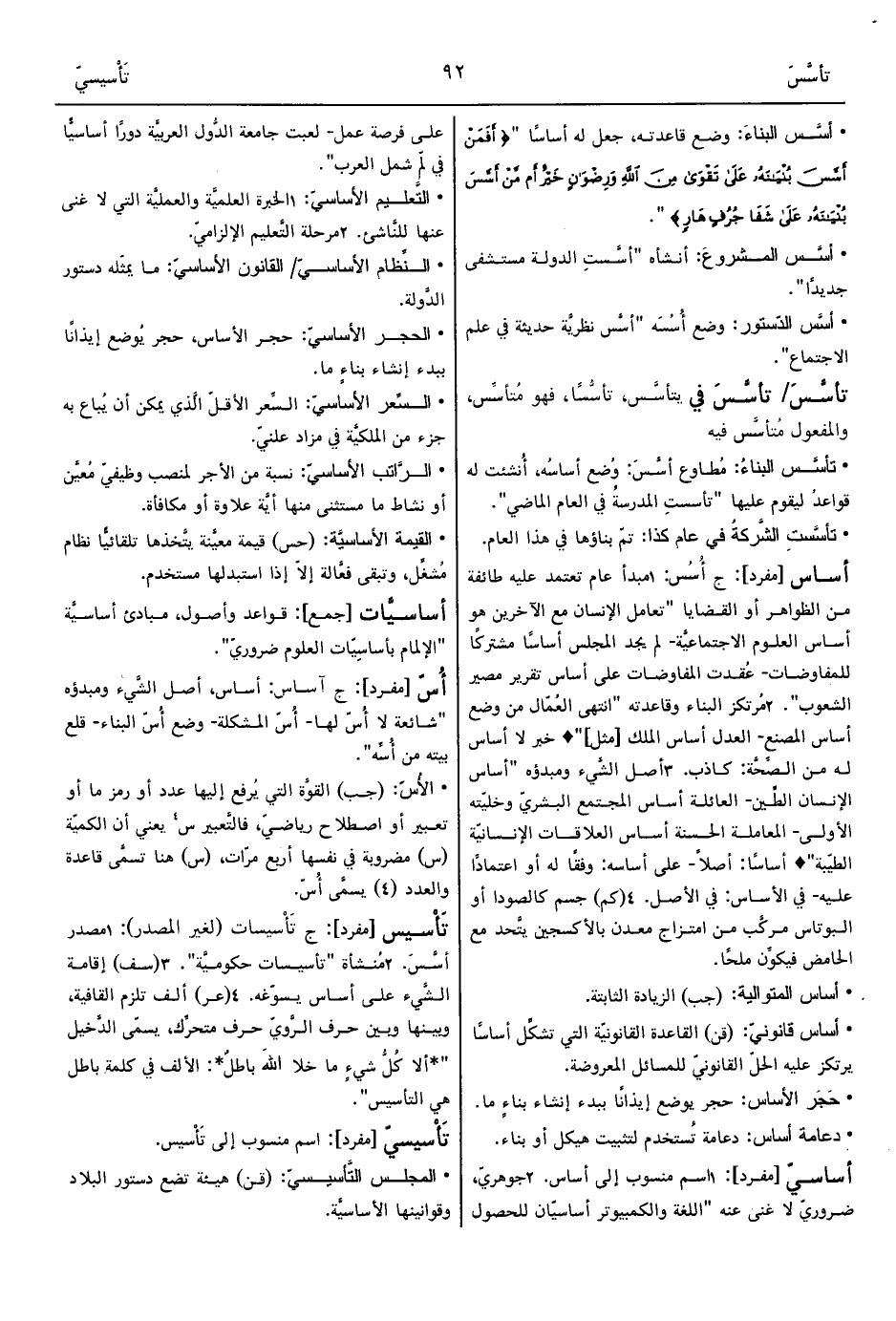 • المجلس التَّأسيسيّ: (قن) هيئة تضع دستور البلاد وقوانينها الأساسيَّة.